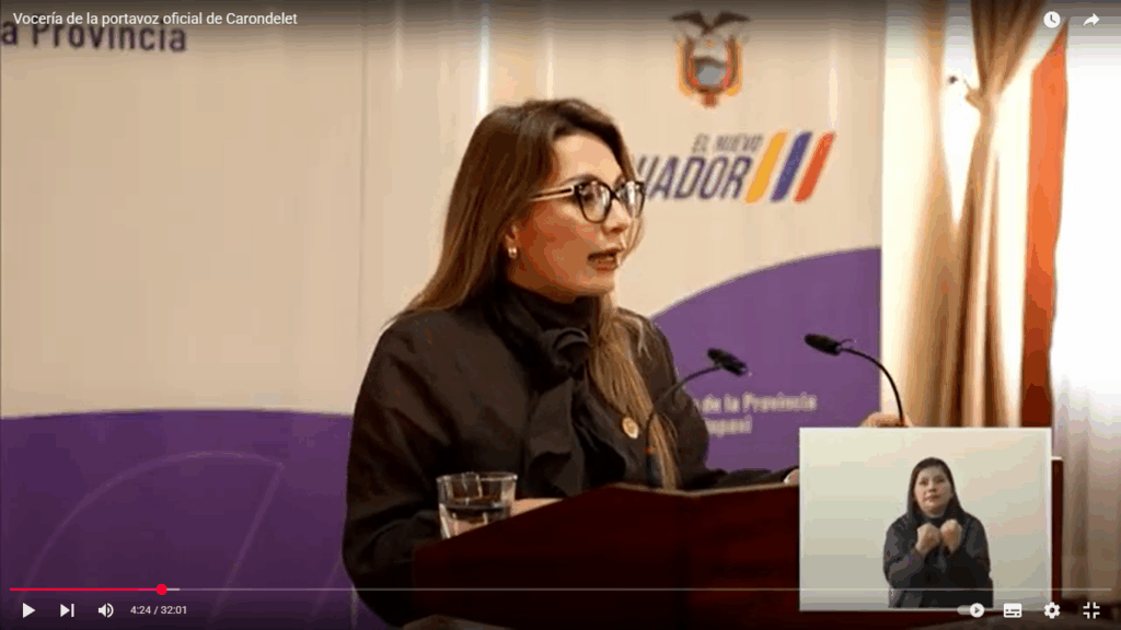 Latacunga, Cotopaxi. La mañana de este lunes 29 de septiembre, la vocera presidencial, Carolina Jaramillo Garcés, hizo nuevos anuncios al Ecuador sobre temas relevantes de la coyuntura nacional. Ataque a un convoy, acciones para la redistribución de recursos, incremento de ventas y exportación de energía son los temas que marcaron la intervención oficial.